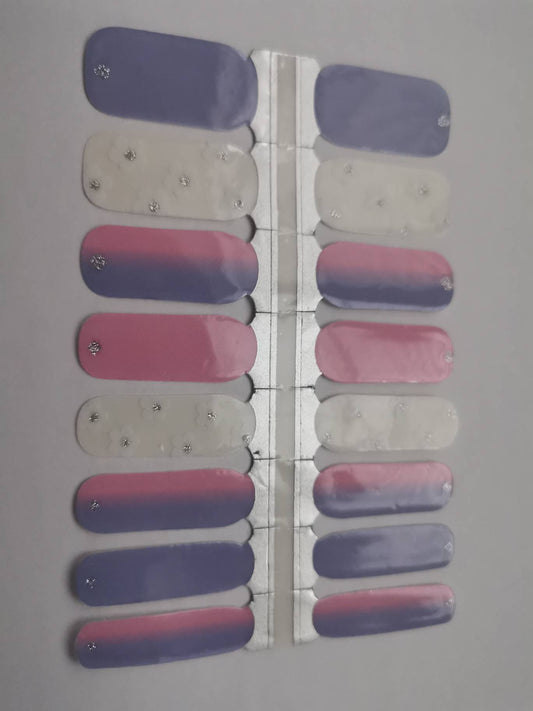 Dégradé Ombre Rose et Violet avec Fleurs Blanches Paillettes Argentées et Fond Clair